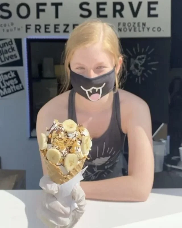 Vegan soft serve made from scratch in hand-made GF waffle cones with flavors made from real food and toppings curated with love, plus collaborations with local minded folks.